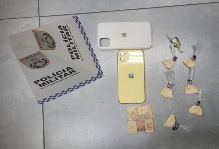 De acordo com a PM, junto com o homem capturado, os policiais encontraram 6 sacolés de pó branco, com características de cocaína, e uma bucha de maconha, além de 50 reais em dinheiro e 1 telefone celular.