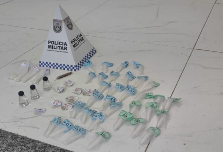 Polícias do 32º Batalhão da Polícia Militar (32º BPM) apreenderam uma sacola de drogas durante uma ação no bairro Jardim Aparecida, em Casimiro de Abreu, depois que um homem fugiu ao perceber a aproximação da viatura.