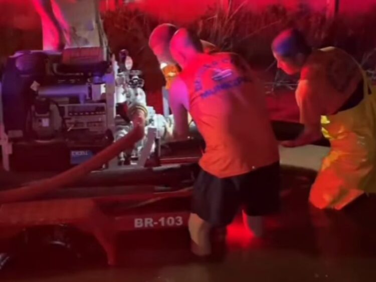 “É muita chuva, foi acumulada aqui uma quantidade de água muito grande, tem uma lagoa aqui do lado que extravasou, e ela não está descendo, causando alagamento. Então a gente vai trabalhar aqui até esgotar isso, e trazer esse bairro e esses moradores à sua rotina e à sua normalidade”, contou Edmílson Martins.