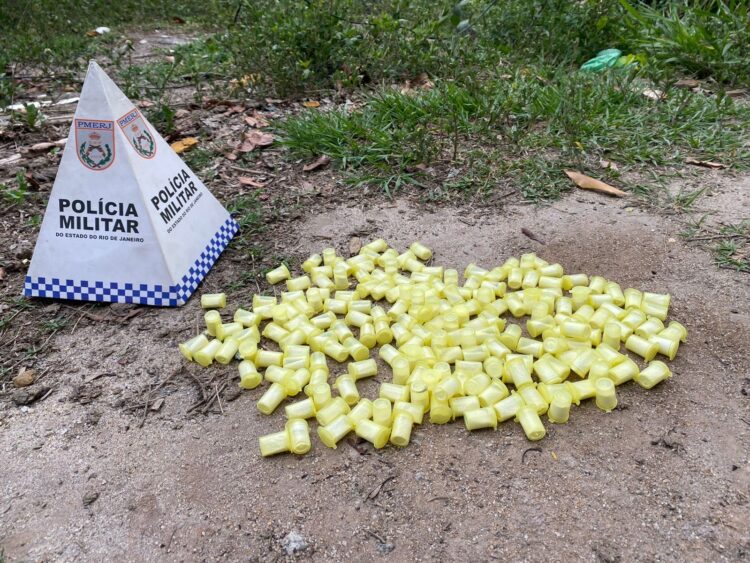 Na abordagem, os policiais encontraram inicialmente dez cápsulas de cocaína. Os agentes então receberam novas informações e realizaram uma busca mais aprofundada no perímetro. Foi assim que eles encontraram 194 cápsulas de cocaína (640g), R$ 15,00 em espécie e um aparelho celular.