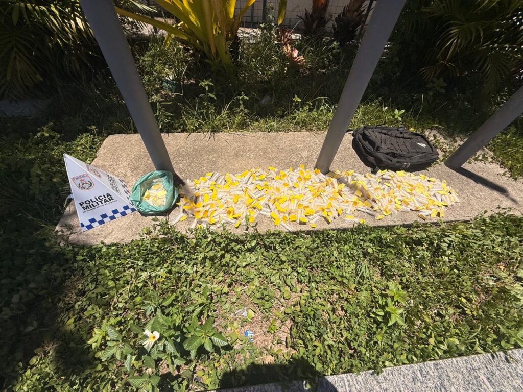 Os agentes realizaram um cerco tático no local e encontraram uma sacola com drogas e dinheiro em espécie. As buscas seguiram e a guarnição encontrou um veículo abandonado com uma mochila grande, que também continha drogas.