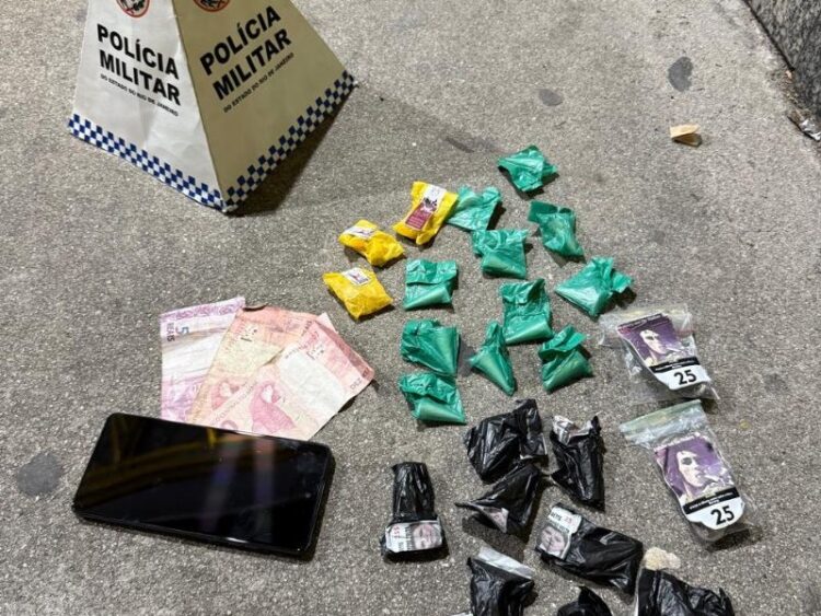 A ação aconteceu em resposta a denúncias anônimas sobre a venda de drogas na localidade, onde os agentes prenderam um homem carregando 11 cápsulas de cocaína, 1 telefone celular e 25 reais em dinheiro.